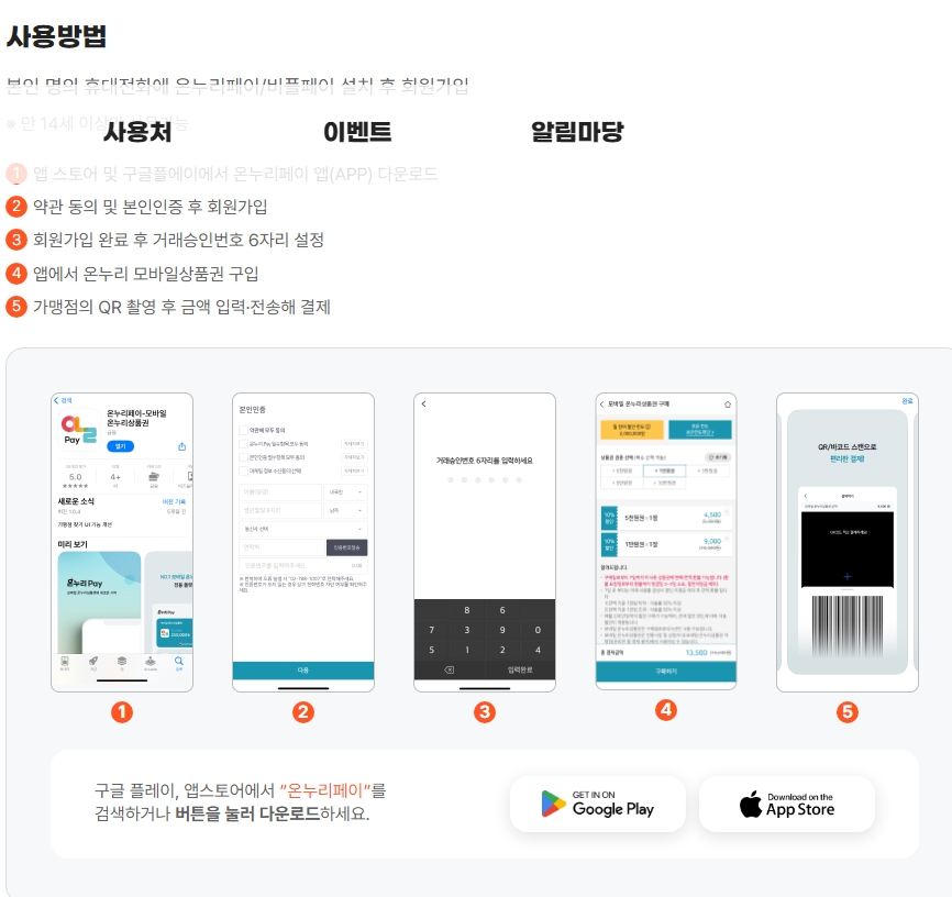 ✅ 온누리상품권 전용 앱 다운로드: 구글 플레이스토어(Android) 또는 애플 앱스토어(iOS)에서 다운로드