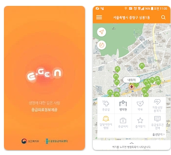 -병의원, 약국, 비상진료 정보를 총망라한 응급의료 정보제공 인터넷과 모바일 앱 '이젠'입니다.