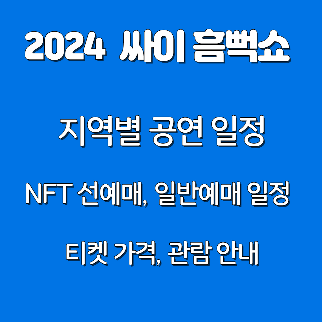 2024년 여름을 시원하게 만들어 줄 싸이흠뻑쇼 일정이 나왔습니다. 전국9개 도시에서 진행되는 싸이 흠뻑쇼 일정, NFT 티켓팅, 티켓 금액, 공연관람안내를 참고하셔서 예매에 성공하시길 바랍니다.