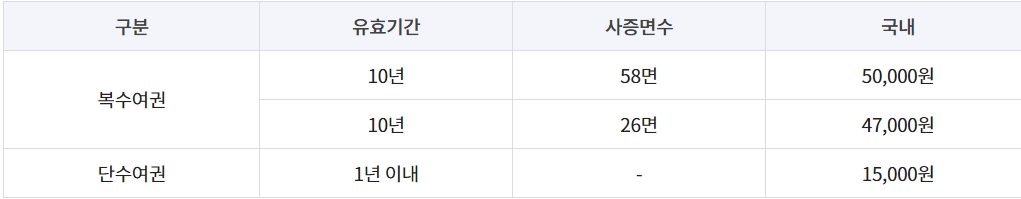 여권 종류와 면수(페이지)에 따라 발급비용이 각각 다릅니다. 국제교류기금이 7월 1일부터 변경되어 3,000원~5,000원 여권발급 비용이 인하되었습니다.